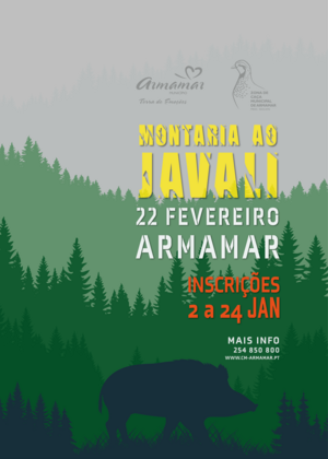A Montaria ao Javali realiza-se no dia 22 de fevereiro. As inscrições estão abertas no período de 2 a 24 de janeiro. Mais ...AconteceDetalhe do eventoNewsletter Acontece | Listagem