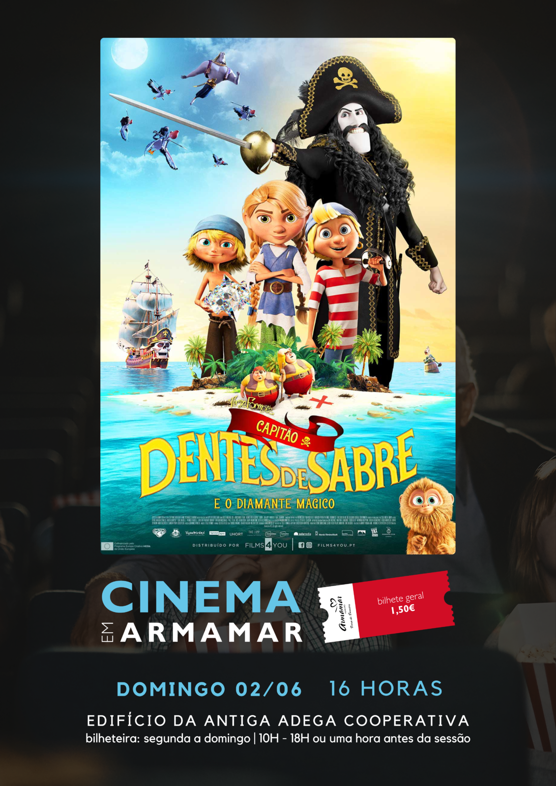 O cinema regressa a Armamar no próximo dia 2 de junho! Para celebrar todas as crianças e a criança que há dentro de cada um de nós, trazemos o filme “Capitão Dentes de Sabre e o Diamante Mágico”!