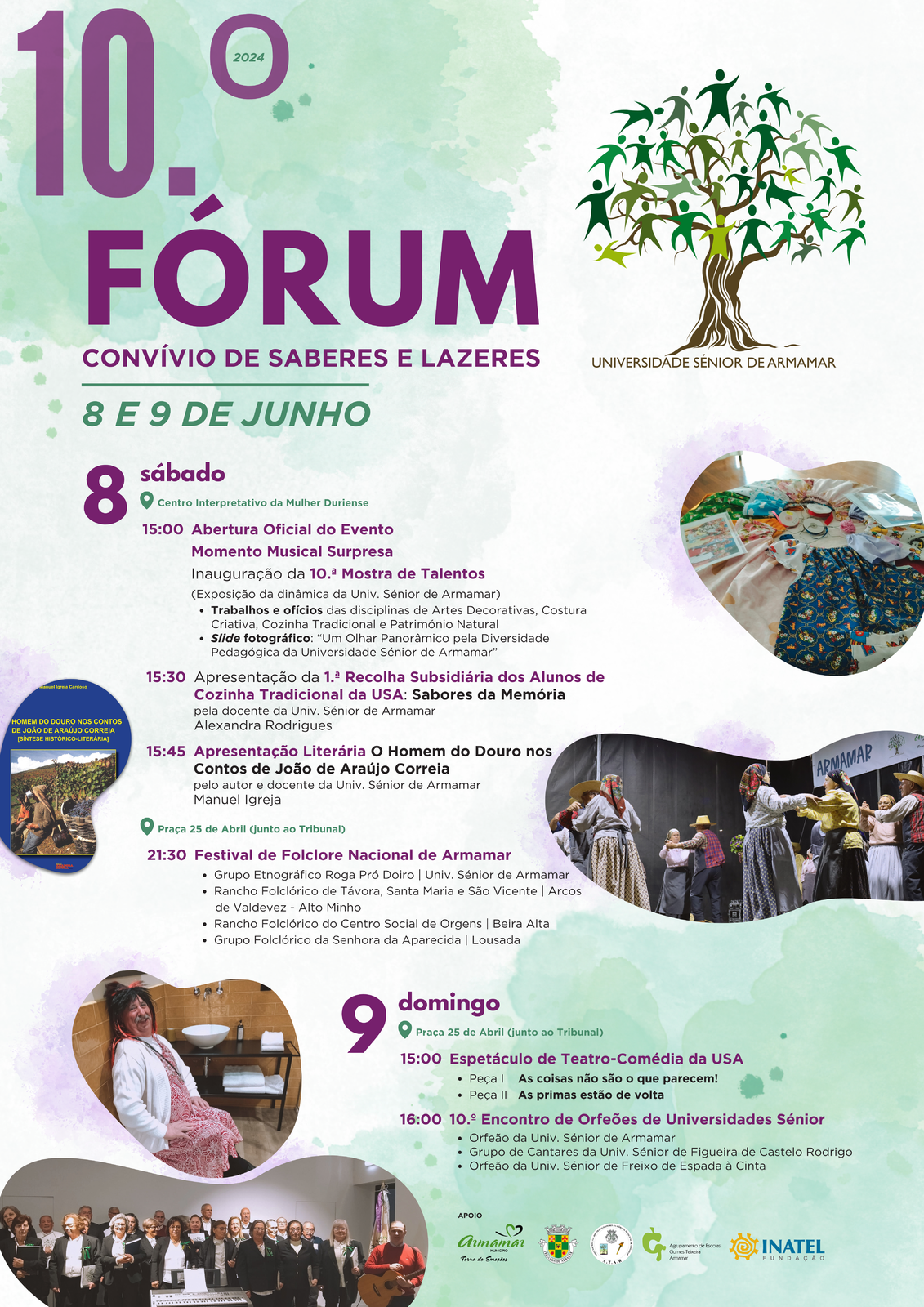 A Universidade Sénior de Armamar (USA) promete um fim-de-semana repleto de cultura e animação nos próximos dias 8 e 9 de junho! As atividades da décima edição do Fórum refletem aquilo que vai ser um verdadeiro convívio de saberes e lazeres.